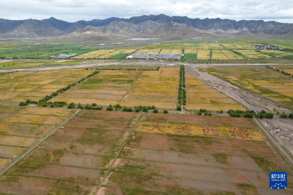 這是在西藏日喀則市薩迦縣扯休鄉(xiāng)拍攝的高原藜麥種植基地(無(wú)人機(jī)照片,9月4日攝)。新華社記者 孫瑞博 攝 ??