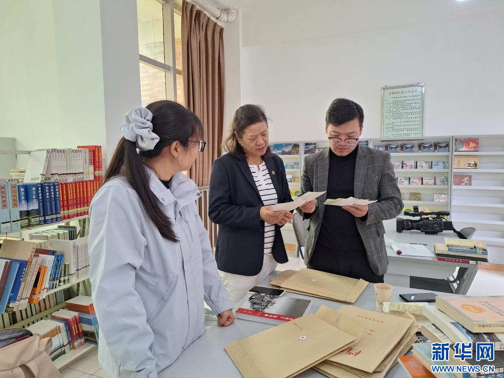 這是調(diào)研人員在與專家學(xué)者研究紅色文獻(xiàn)。新華網(wǎng)發(fā)(受訪者供圖)