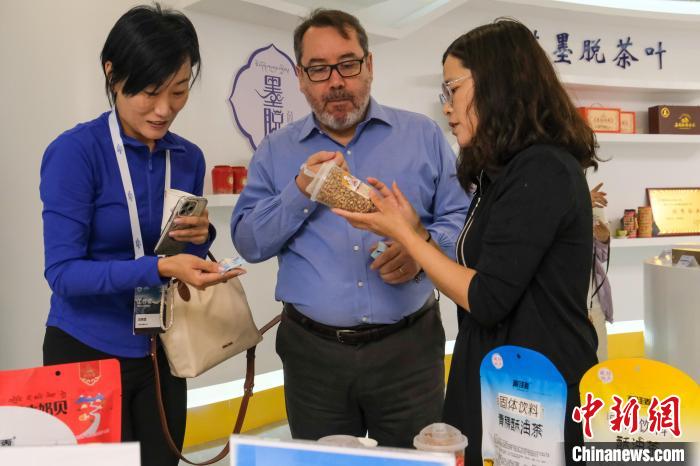 圖為6月28日,智利駐華大使巴勃羅·阿里亞蘭(中)在林芝經(jīng)濟(jì)開(kāi)發(fā)區(qū)參訪時(shí)品嘗青稞食品。中新社記者 江飛波 攝