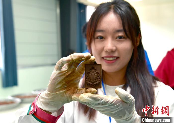 7月13日,西藏昌都市昌都經(jīng)濟(jì)開發(fā)區(qū)的廠房里,現(xiàn)代化設(shè)備和非遺手工制作的藏香整齊擺放。作為昌都市藏藥生產(chǎn)龍頭企業(yè),西藏仙露藏藥有限公司大力研發(fā)生產(chǎn)藏香產(chǎn)品,讓更多民眾在家門口就業(yè),帶動(dòng)民眾增收致富。圖為員工展示藏香牌。中新社記者 李林 攝
