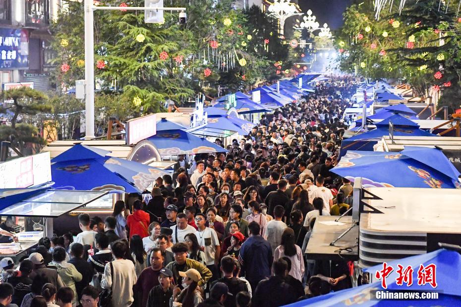7月15日晚,西藏自治區(qū)拉薩市宇拓路上燈火璀璨,“拉薩不夜城”正式開街。該條連接布達拉宮與大昭寺、全長920米的歷史老街,此次選取其中370米路段,依托“拉薩不夜城”項目以“文商旅融合·新業(yè)態(tài)新場景”模式,深挖自身歷史與區(qū)位優(yōu)勢,打造成為集“夜游、夜購、夜宴、夜娛”于一體的夜間經(jīng)濟新地標?;顒蝇F(xiàn)場,協(xié)榮仲孜、覺木隆藍面具等7支非遺隊伍開展巡游表演,盡顯藏地風(fēng)情。據(jù)悉,項目設(shè)有169個經(jīng)營點位,包括創(chuàng)意集裝箱、定制餐車、特色經(jīng)營屋和開放式攤位四種類型,聚焦西藏好物、特色餐飲、潮街氛圍三大業(yè)態(tài)主題。“拉薩不夜城”的開街,不僅豐富了市民的夜間生活,也為游客提供體驗拉薩魅力的新去處,助力拉薩夜間經(jīng)濟與文旅產(chǎn)業(yè)升級。圖為“拉薩不夜城”人氣爆棚,眾多市民與游客在此相聚,感受夜晚的熱鬧氛圍。貢確 攝