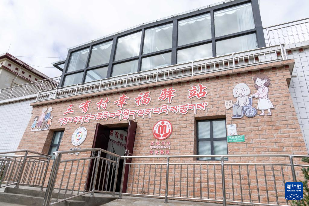 7月17日拍攝的拉薩市曲水縣達嘎鎮(zhèn)三有村幸福驛站日間照料室外景。新華社記者 旦增尼瑪曲珠 攝