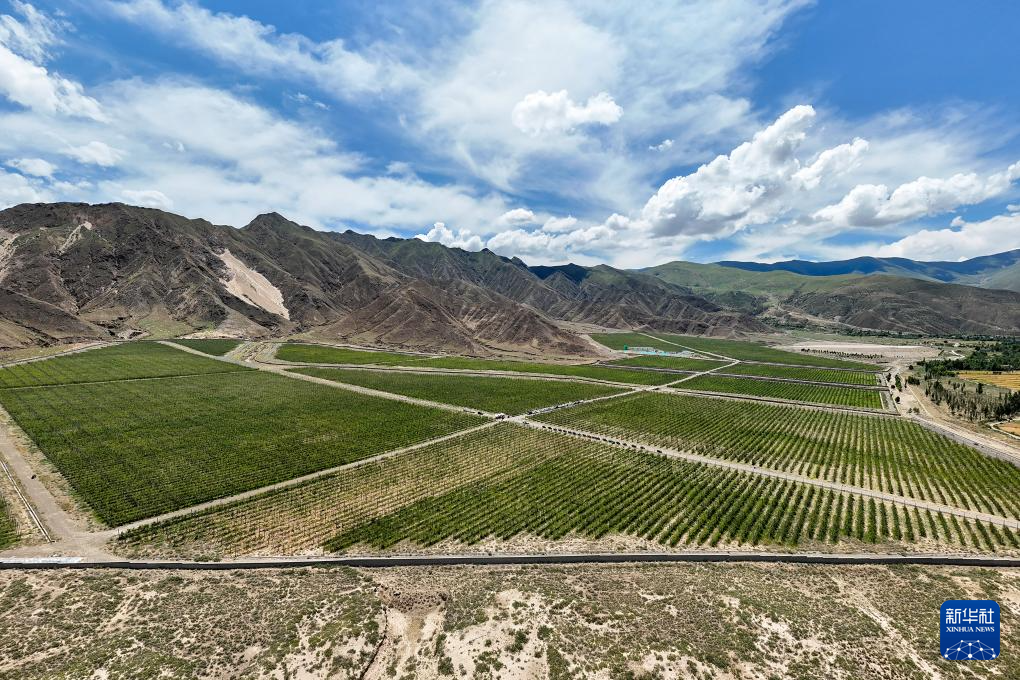 ?這是西藏扎囊縣的一處矮化蘋果種植園區(qū),采用現(xiàn)代農(nóng)業(yè)滴灌技術(shù),使水資源得到高效利用,還可以用果樹防風(fēng)固沙,讓沙化地變綠洲(無人機(jī)照片,7月19日攝)。新華社記者 李鑫 攝 ??
