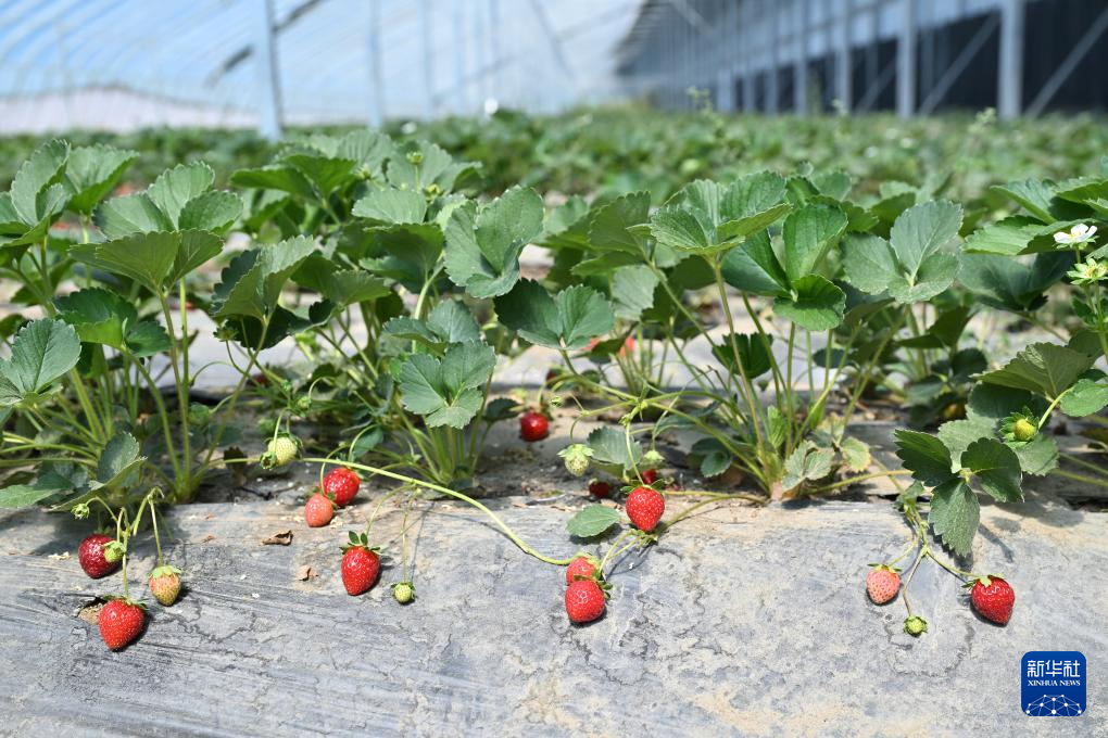 這是西藏扎囊縣綠之源現(xiàn)代農(nóng)業(yè)科技股份有限公司大棚中種植的有機(jī)草莓(7月19日攝)。新華社記者 李鑫 攝