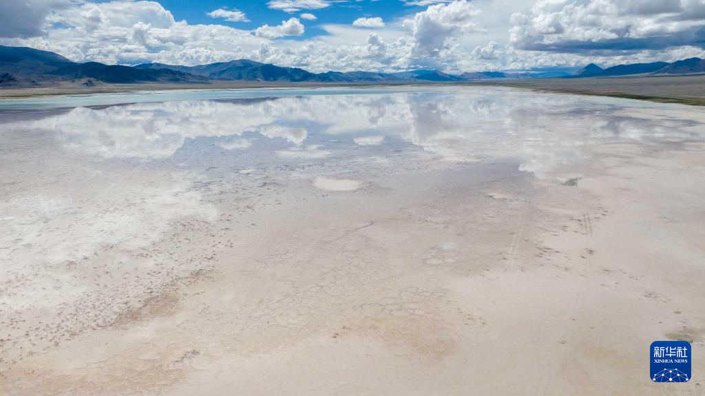 7月20日拍攝的位于西藏阿里地區(qū)革吉縣的鹽湖一景(無(wú)人機(jī)照片)。新華社記者 旦增尼瑪曲珠 攝 ??