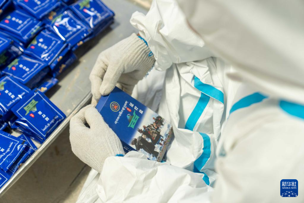 7月20日,革吉縣一家粗鹽加工廠工作人員在包裝鹽。新華社記者 旦增尼瑪曲珠 攝