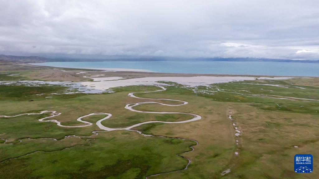 7月22日拍攝的瑪旁雍錯(cuò)濕地一景(無人機(jī)照片)。新華社記者 旦增尼瑪曲珠 攝 ??