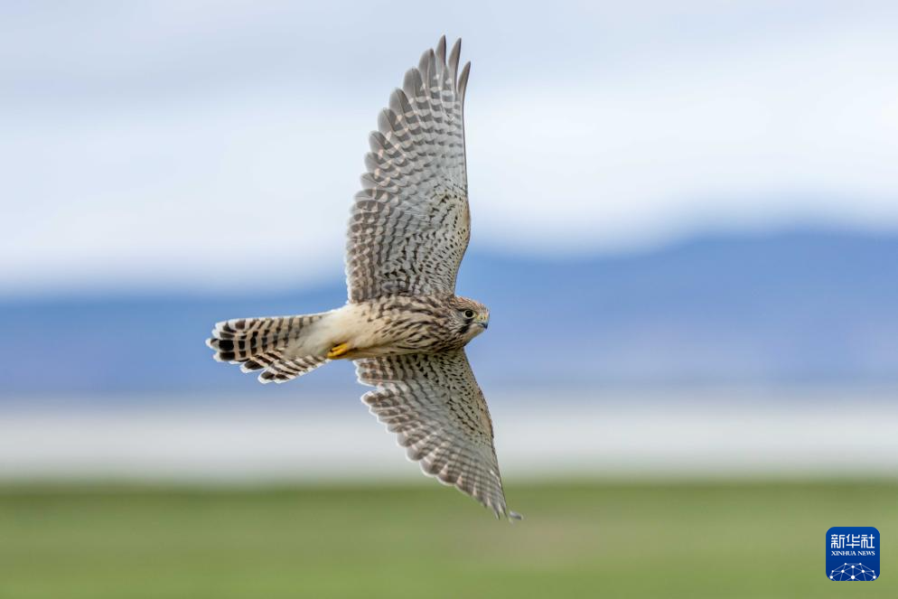 7月22日拍攝的瑪旁雍錯(cuò)濕地上棲息的國(guó)家二級(jí)保護(hù)野生動(dòng)物紅隼。新華社記者 旦增尼瑪曲珠 攝