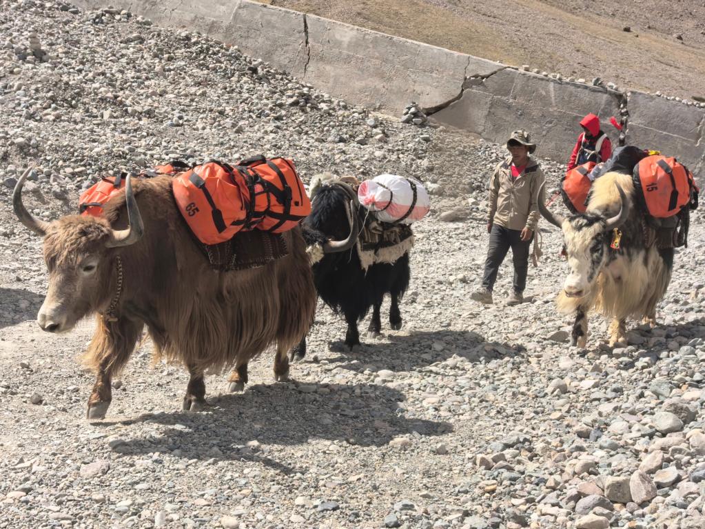 在徒步路線的起點(diǎn)廣場(chǎng)上,一隊(duì)隊(duì)牦牛隊(duì)整裝待發(fā),游客的行李正被穩(wěn)穩(wěn)地放上牛背。不少外籍游客雇傭本地牧民,利用牦牛馱運(yùn)行李并提供向?qū)Х?wù)。陳賢剛介紹,旅游業(yè)已成為巴嘎鎮(zhèn)經(jīng)濟(jì)的主導(dǎo)產(chǎn)業(yè),當(dāng)?shù)鼐用袷杖胫屑s一半來(lái)自旅游相關(guān)工作。