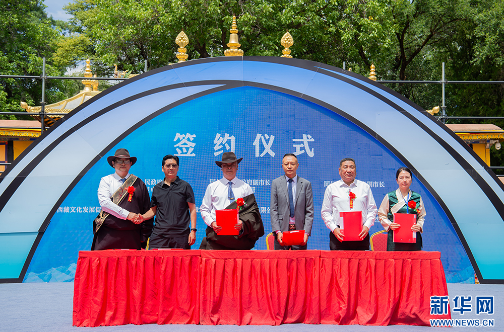 7月26日,活動現(xiàn)場簽訂戰(zhàn)略合作協(xié)議。新華網(wǎng) 旦增努布 攝