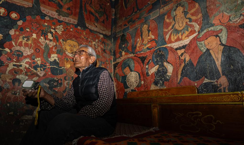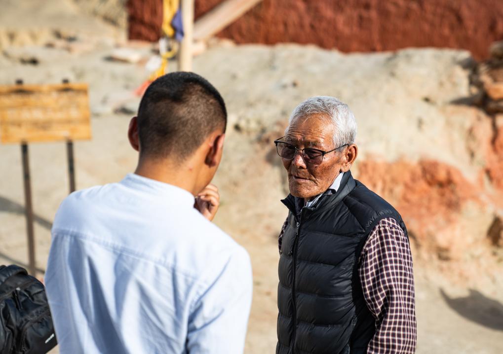 “這些壁畫,是1000多年前畫上去的?!?7歲的東嘎村村民仁增旺扎拄著拐杖,向游客耐心講解。盡管已從文保員的崗位上退休,但20多年來守護(hù)石窟的習(xí)慣早已刻進(jìn)了生活。他的身影仍不時出現(xiàn)在石窟間,像往常一樣,講述這些千年壁畫背后的故事。