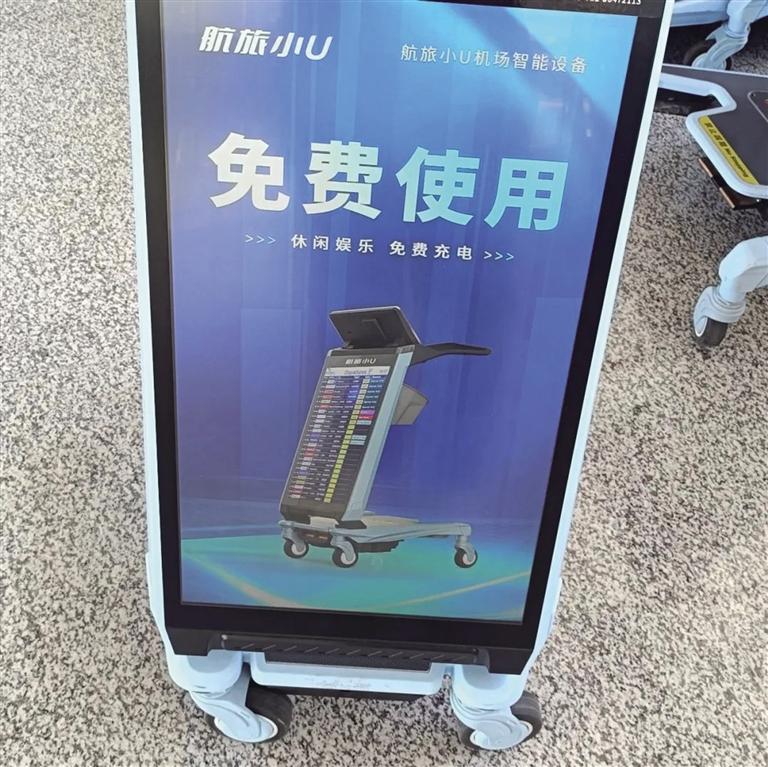 智能屏幕手推車不僅集成導航、航班信息查詢、機場商業(yè)引流等基礎功能,還涵蓋充電、娛樂體驗、目的地服務前置等多元化服務,操作界面簡潔直觀,精準匹配旅客的各類需求,全面提升旅客出行體驗。