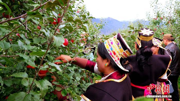 圖為米林農民采摘蘋果。米林融媒體中心 供圖