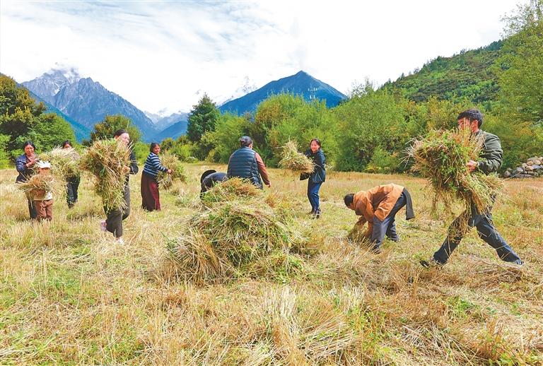 林芝市工布江達(dá)縣錯高鄉(xiāng)結(jié)巴村村民秋收場景。白瑪澤旺 次仁平措 攝