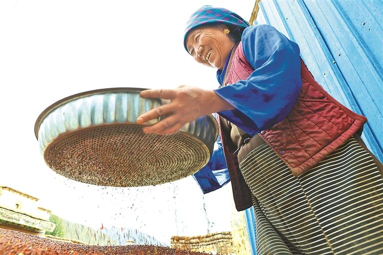 拉薩市墨竹工卡縣唐加鄉(xiāng)莫沖村村民正在篩菜籽。記者 旦增蘭澤 通訊員 洛克攝