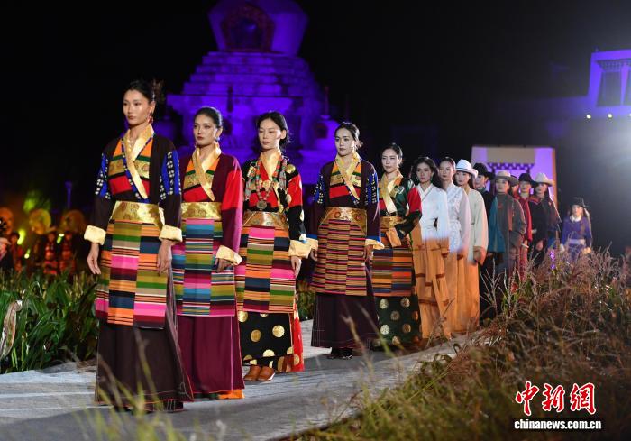20日晚,一場田園中的走秀讓大眾再次感受到鄉(xiāng)城女性最具代表性的民族服飾“瘋裝”的文化內(nèi)涵和動(dòng)人魅力。伴隨著夜幕下的絢麗燈光,當(dāng)?shù)夭刈宕迕窈蛠碜郧嗪?、甘肅、西藏等地的藏族模特身著盛裝,演繹一場融合傳統(tǒng)與現(xiàn)代的“民族時(shí)尚秀”。