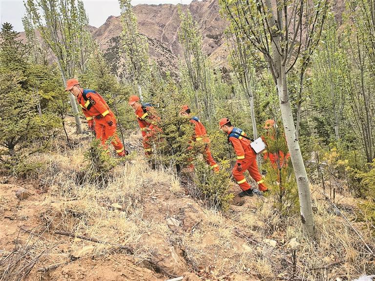 拉薩市森林消防大隊官兵在南山公園執(zhí)行巡邏任務。