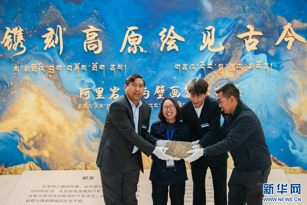 9月26日,“鐫刻高原 繪見古今”阿里巖畫與壁畫藝術(shù)特展上移交巖畫實物展品現(xiàn)場。新華網(wǎng) 旦增努布攝