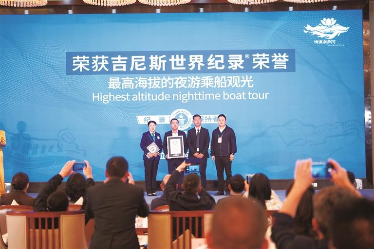 《情滿拉薩河》啟幕現(xiàn)場,中國首位吉尼斯世界紀(jì)錄認(rèn)證官吳曉紅受邀登臺,正式宣布該項(xiàng)目“最高海拔的夜游乘船觀光”挑戰(zhàn)成功,并現(xiàn)場頒發(fā)認(rèn)證證書。9月28日,認(rèn)證官全程參與測繪,從夜游路線設(shè)計、安全保障到文化呈現(xiàn),均符合吉尼斯世界紀(jì)錄認(rèn)證的嚴(yán)苛標(biāo)準(zhǔn)。 此次認(rèn)證不僅填補(bǔ)了世界高海拔地區(qū)夜間水上觀光類項(xiàng)目的空白,更印證了中國在高原旅游領(lǐng)域的產(chǎn)品設(shè)計、施工建造、生產(chǎn)運(yùn)營、創(chuàng)作能力達(dá)到世界領(lǐng)先水平。該榮譽(yù)紀(jì)錄的誕生,為同類項(xiàng)目的國際認(rèn)證與品質(zhì)提升提供了重要范本,標(biāo)志著拉薩文旅發(fā)展邁入國際化新階段。