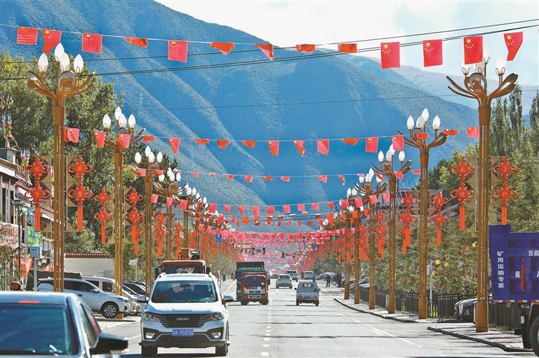 圖為墨竹工卡縣裝飾一新的街道。 通訊員 洛克 記者 唐斌 攝