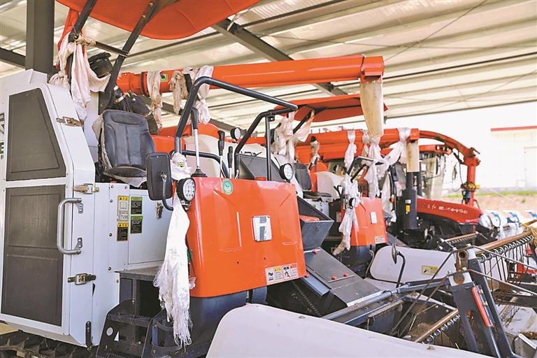 圖為停放在克日村機(jī)械庫里的現(xiàn)代化農(nóng)機(jī)。記者 尼瑪扎西 攝