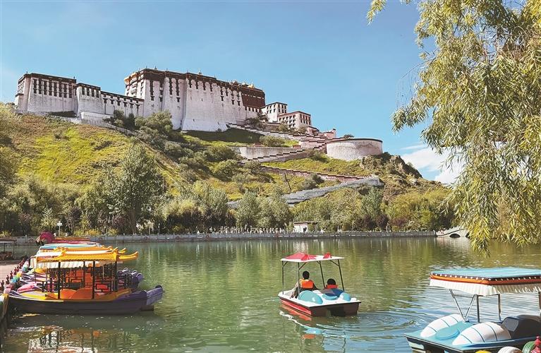 市民游客在宗角祿康公園泛舟游玩。記者 白瑪澤旺 唐斌 攝