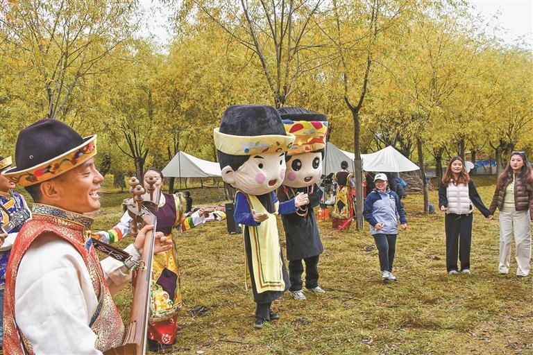 圖為徒步愛好者與“NPC”角色開展歌舞互動游戲。記者 劉楓 攝