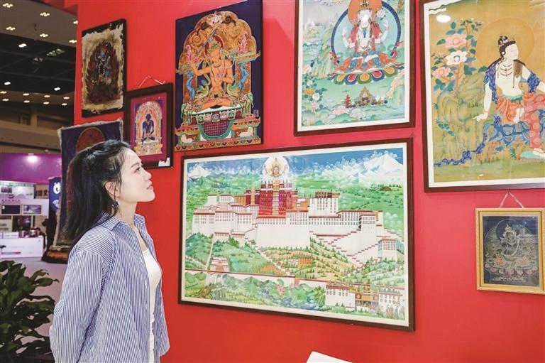 場館外,熱情奔放的康巴歌舞洋溢著濃郁的民族風(fēng)情。走進(jìn)場館內(nèi)部,可以近距離體驗(yàn)藏香制作和飄逸靈動(dòng)的藏文書法。唐卡漆畫、民族手工飾品等藏東文化和蟲草、貝母、藏紅花等特色產(chǎn)品琳瑯滿目,更有邊壩三色湖、貢覺拉妥濕地、芒康千年鹽田、洛隆俄西杏花等雪域美景,進(jìn)館咨詢互動(dòng)的企業(yè)、嘉賓絡(luò)繹不絕。
