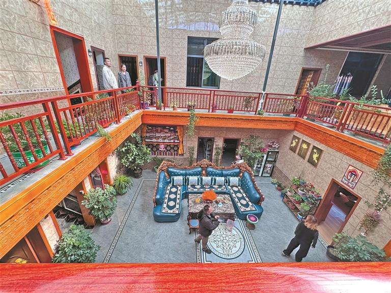 走進(jìn)次仁措姆家院子里,她正在自家果園采摘?jiǎng)偝墒斓氖?,房前的小院里整齊擺放著各種盆栽?!耙郧胺壳拔莺箅s物亂堆,經(jīng)過(guò)整治,空出的地方種上了蔬果,現(xiàn)在家家戶戶都有小果園,多虧了村里的整治行動(dòng)?!贝稳蚀肽奉I(lǐng)著我們到客廳,指著墻上的“美麗庭院”流動(dòng)紅旗笑著說(shuō):“這面旗是上個(gè)月評(píng)上的,現(xiàn)在村里都比著搞衛(wèi)生,誰(shuí)也不想落后?!?/p>