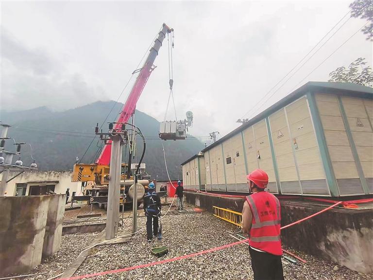 圖為國網(wǎng)察隅縣供電公司工作人員正在對(duì)變壓器進(jìn)行改造施工。記者 劉楓 攝