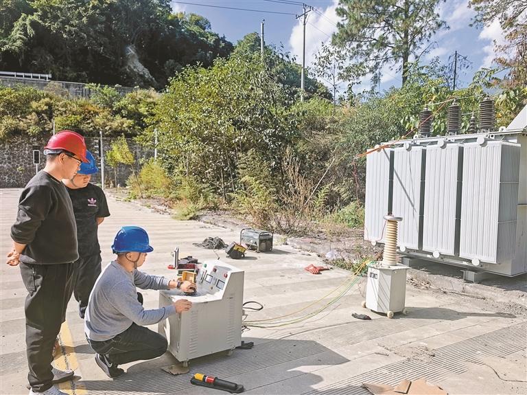 圖為國網(wǎng)察隅縣供電公司工作人員正在對(duì)變壓器進(jìn)行試驗(yàn)調(diào)試。記者 劉楓 攝