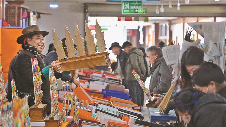 圖為拉薩八廓商城三樓酥油花攤位。 通訊員 多吉卓瑪 旦增尼瑪 攝