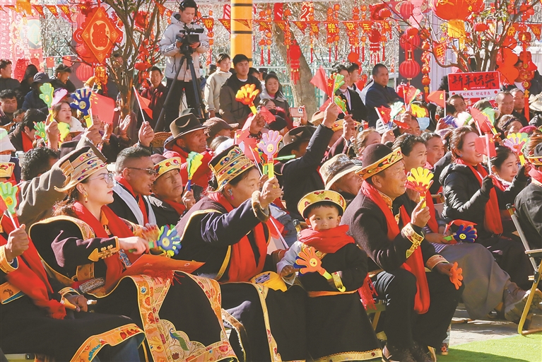 來自羌納鄉(xiāng)崗嘎村的扎西,看完熱鬧喜慶的文藝演出后,領到了一副寓意吉祥的藏文春聯(lián),臉上滿是歡喜。他樂呵呵地說:“今年我們家靠著跑運輸、出租機械,收入差不多有20萬元。不用遠走他鄉(xiāng),在家門口就能穩(wěn)穩(wěn)當當掙錢。逢年過節(jié),附近還經常舉辦這么有意思的活動,這么好看的節(jié)目,日子越過越紅火、越過越舒心。這一樁樁、一件件,都讓我們真切感受到了黨的關心和關懷。”