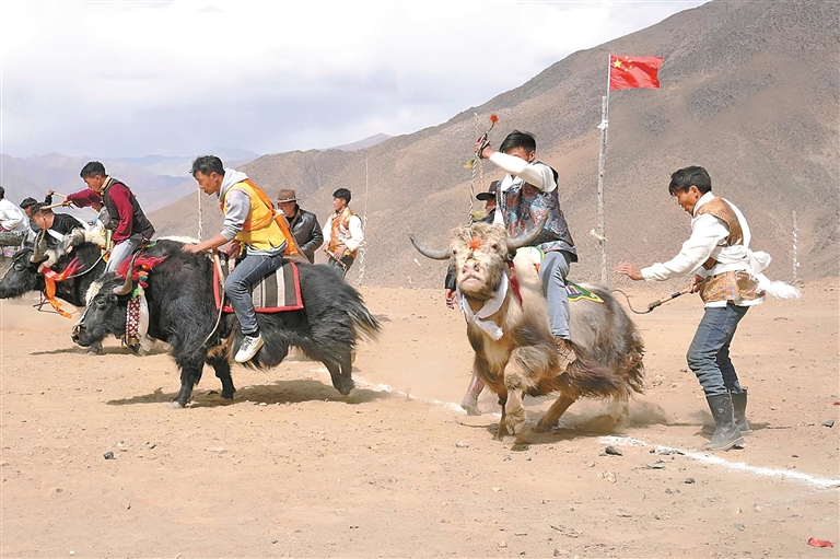 拉薩市達孜區(qū)章多鄉(xiāng)舉辦賽牦牛民俗活動。記者 洛桑平措 攝