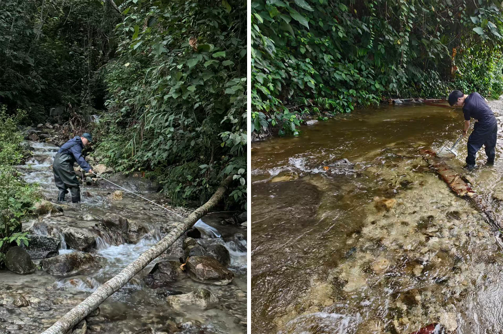 圖為墨脫流施密搖蚊棲息地環(huán)境照。上海海洋大學(xué)林曉龍副教授(左)和碩士研究生張智超(右)正在采集水生昆蟲。(西藏自治區(qū)高原生物研究所“達(dá)娃創(chuàng)新工作室”供圖)