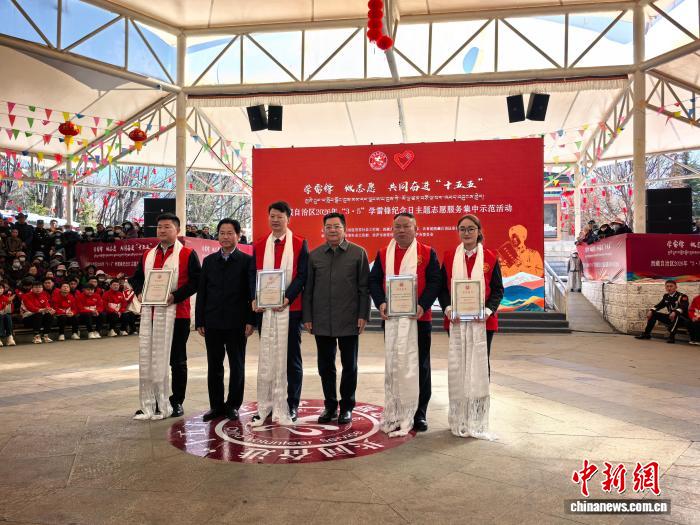 活動上,榮獲2025年度西藏自治區(qū)志愿服務(wù)先進典型代表獲得證書,6支志愿服務(wù)隊伍授旗?!叭珖蠲乐驹刚摺毖胱诖砦鞑刈灾螀^(qū)廣大志愿者向社會各界發(fā)出“學(xué)習(xí)雷鋒精神開展志愿服務(wù)”倡議,激勵更多人加入志愿服務(wù)隊伍中。