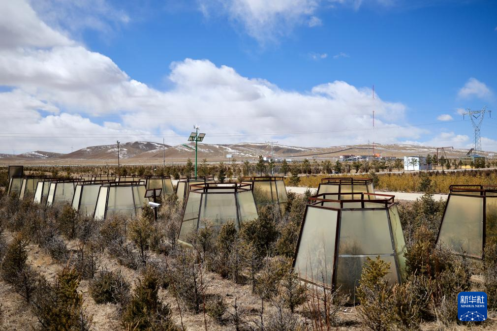 西藏那曲地區(qū)城鎮(zhèn)植樹關(guān)鍵技術(shù)研發(fā)與綠化模式示范項目示范基地中的頂開式濾光溫室。新華社記者 周昱龍 攝
