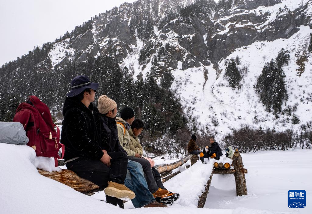 3月21日,游人和當(dāng)?shù)叵驅(qū)讲竭M(jìn)入白普隆溝牧場(chǎng)。新華社記者 洛卓嘉措 攝