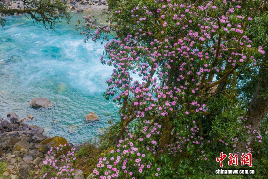 近日,流經(jīng)西藏那曲市嘉黎縣至林芝市波密縣的易貢藏布(也稱易貢河)流域,迎來高山杜鵑最佳觀賞期。作為雅魯藏布江的二級支流,易貢藏布兩岸山巒疊嶂,高山峽谷間,成片高山杜鵑競相綻放。粉白、紫紅的花朵點綴于蒼松翠柏之間,與蜿蜒的河流相互映襯,構(gòu)成一幅壯麗的高原生態(tài)畫卷。圖為3月28日,奔騰的易貢藏布與盛開的高山杜鵑。