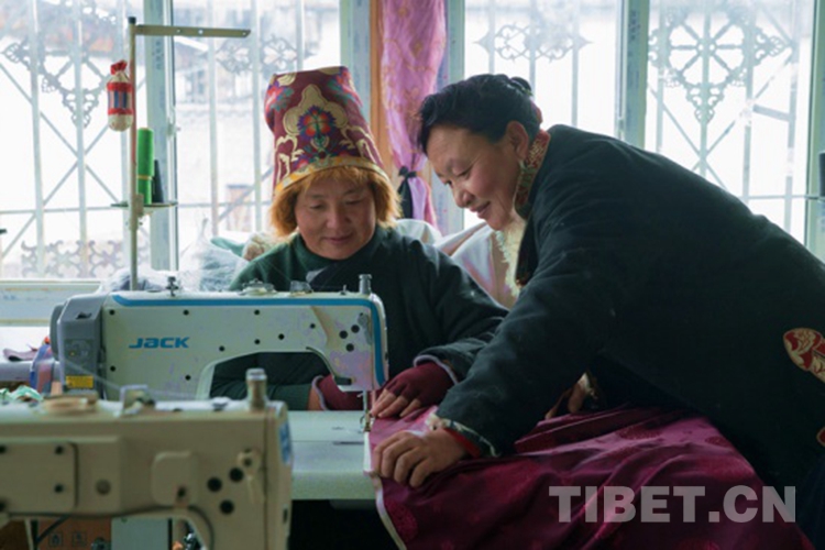 “我以前根本不會(huì)做衣服,多虧了扎西次措老師的指導(dǎo),我的手藝長(zhǎng)進(jìn)很大,手工做出來(lái)的服飾帶來(lái)的收益不少,有了穩(wěn)定收入,家里兩個(gè)大學(xué)生的學(xué)費(fèi)、生活費(fèi)都不愁?!辈际袐D聯(lián)“婦女創(chuàng)業(yè)就業(yè)基地”里,次央巴措正在熟練地使用縫紉機(jī)縫制一件藏裝的邊飾,她是一名單親母親,曾經(jīng)沒(méi)有工作,要供兩個(gè)孩子上學(xué),生活很困難,扎西次措得知情況后,專(zhuān)程上門(mén)做思想工作,并邀請(qǐng)次央巴措到公司來(lái)工作。