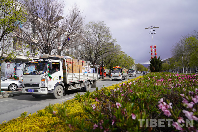 圖為農民運輸連隊在山南市區(qū)運貨中