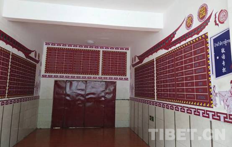 圖為西藏自治區(qū)那曲市比如縣羊秀鄉(xiāng)小學(xué)為了幫助孩子們隨時(shí)隨地學(xué)好藏語(yǔ)敬語(yǔ),精心布置了敬語(yǔ)專(zhuān)欄 攝影:米瑪旺久