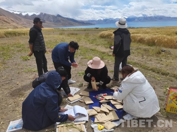 圖為西藏自治區(qū)農(nóng)牧科學院草業(yè)科學研究所科技人員在那曲市尼瑪縣文布南村開展農(nóng)作物第三次普查工作