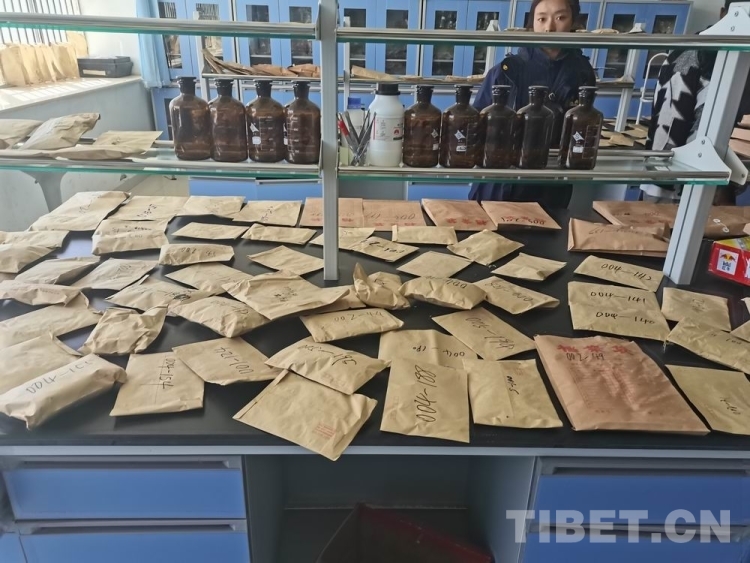 圖為西藏自治區(qū)農(nóng)牧科學院草業(yè)科學研究所科技人員將采集到的牧草種質(zhì)資源在實驗室內(nèi)預處理