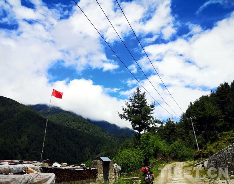 圖為現(xiàn)在的西藏自治區(qū)日喀則市亞東縣縣域內(nèi)隨處可見鮮艷的五星紅旗