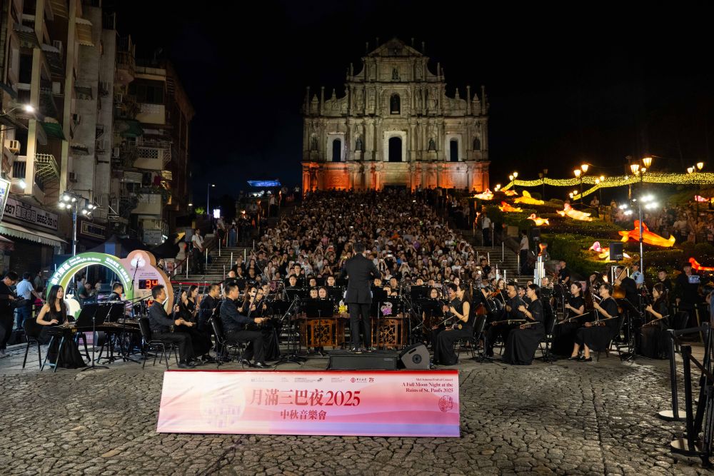 10月6日拍攝的在大三巴牌坊舉行的“月滿三巴夜2025”中秋音樂會(huì)。新華社發(fā)(張金加攝)