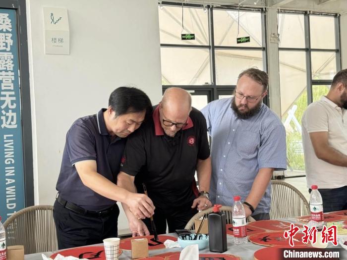國際友人學(xué)寫毛筆字。呂兆元 攝