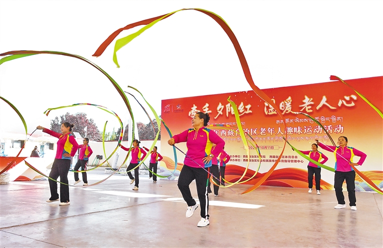 圖為2024年西藏自治區(qū)“牽手夕陽紅 溫暖老人心”老年人趣味運動活動現場。記者 唐斌 攝