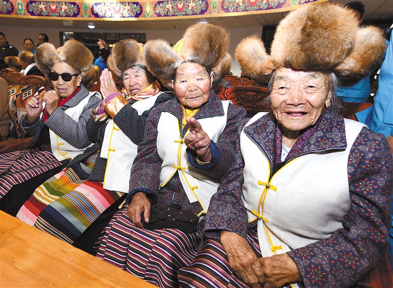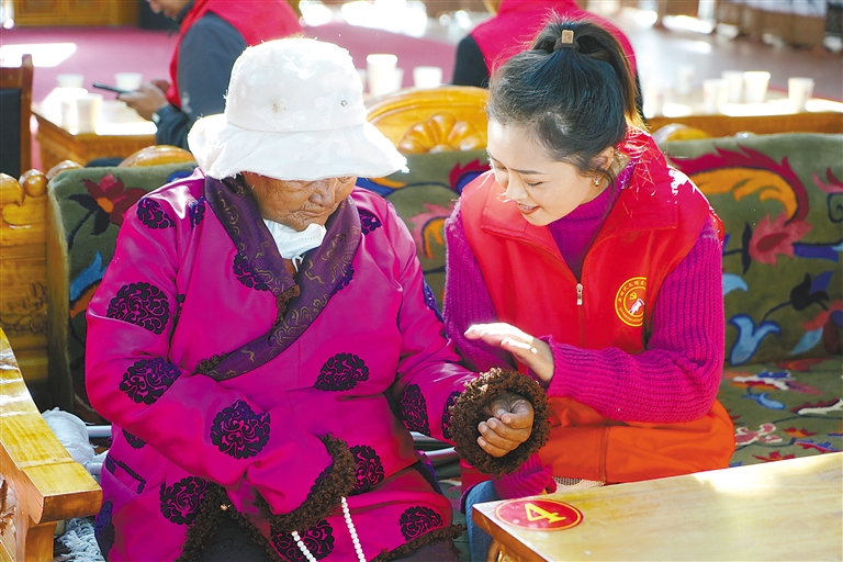 圖為那曲市索縣新時代文明實踐中心為特困人員集中供養(yǎng)服務中心的老人送去關心和關愛。記者 曲珍 通訊員 王霖 攝