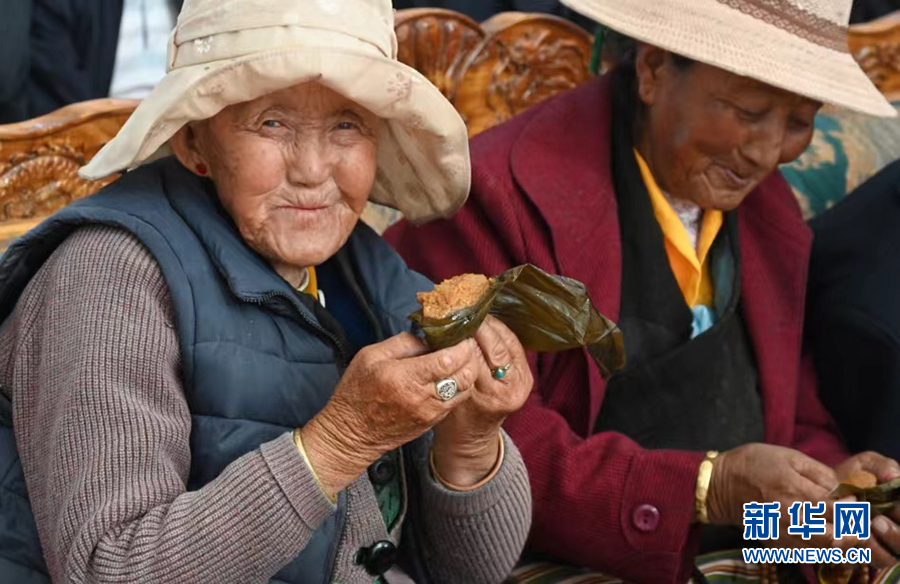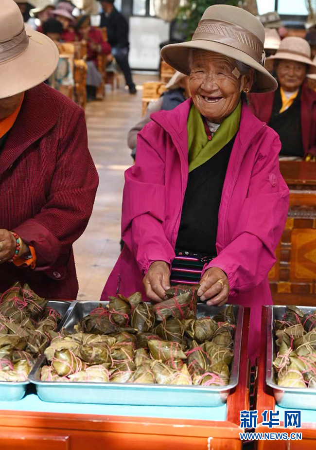 6月3日,西藏山南市集中供養(yǎng)服務(wù)中心的老人們開(kāi)心地領(lǐng)到千里送來(lái)的粽子。新華網(wǎng) 王雷 攝
